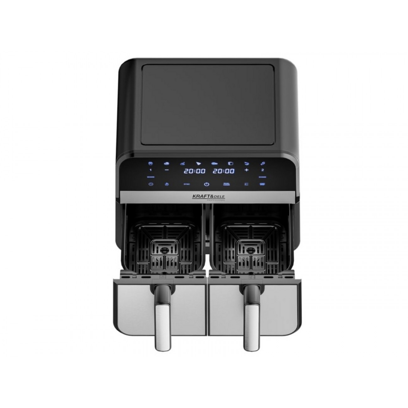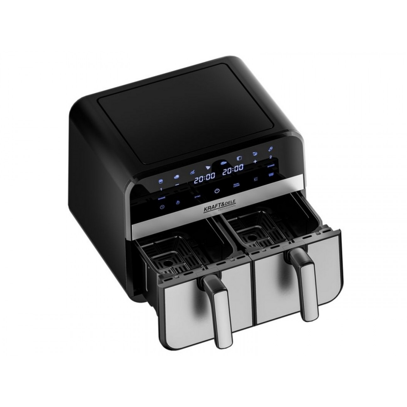 Основные характеристики: – Объем: 9 л – Мощность: 2500 Вт – Тип управления: электронное, сенсорная панель – Температурный диапазон: 80–200 °C – Таймер: до 60 минут – Корпус: термостойкий пластик и металл – Съемная корзина и чаша с антипригарным покрытием – Питание: 220–240 В, 50/60 Гц