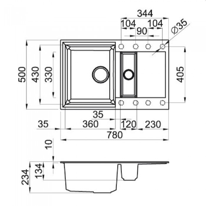 Диаметр сливного отверстия90 мм