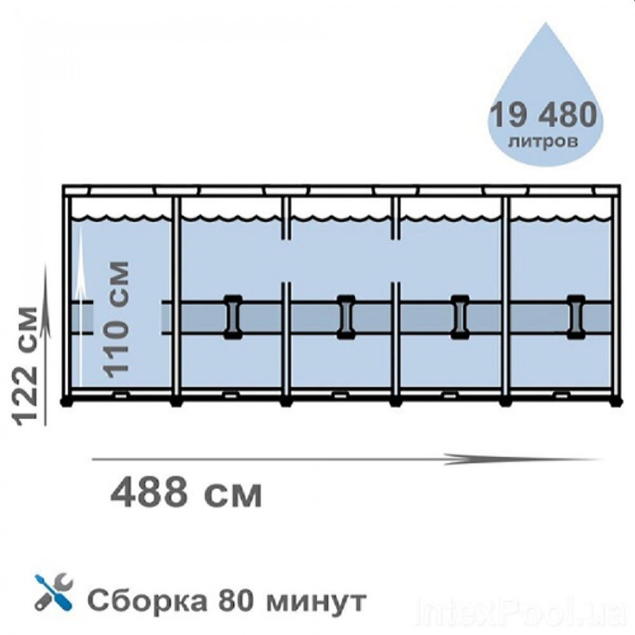 Размеры продукта составляют 122x488x488 см, обеспечивая достаточно пространства для отдыха и развлечений в воде. С весом 72,8 кг, бассейн легко устанавливается и обслуживается, обеспечивая вам приятные моменты на долгое время. Сделав покупку онл
